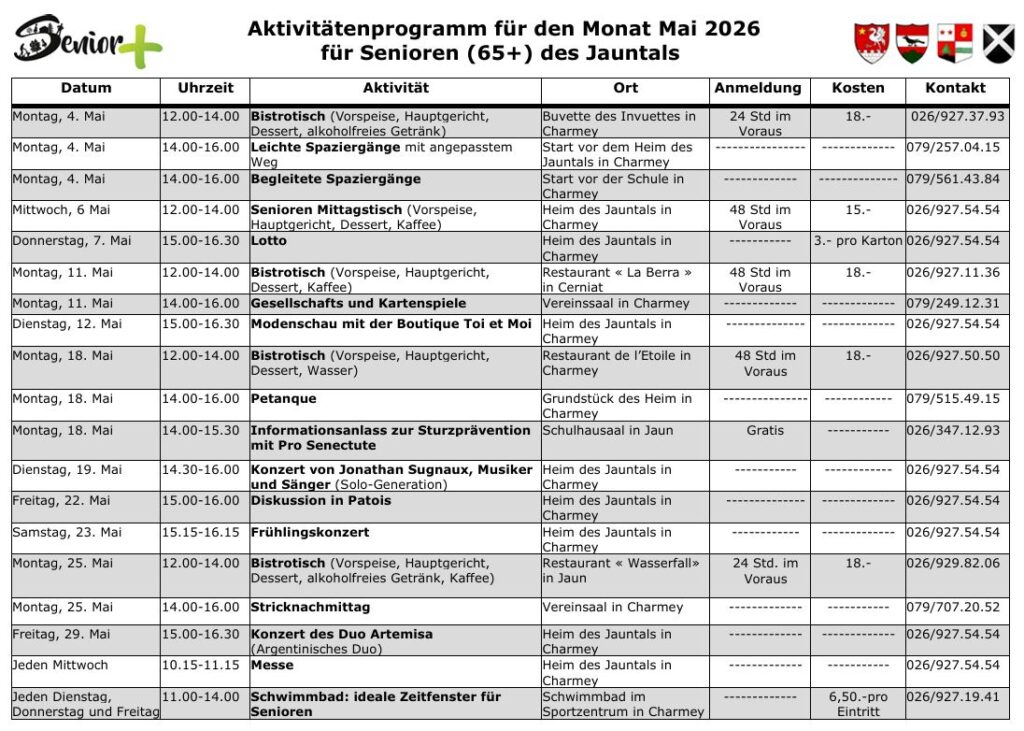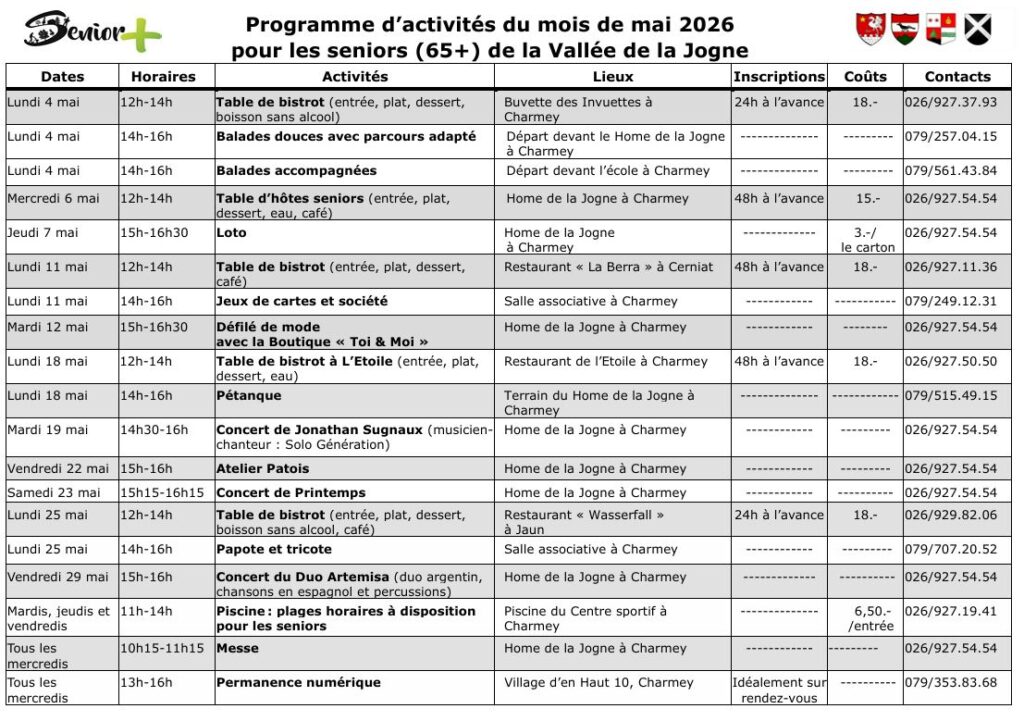 Sénior + Vallée de la Jogne – Programme du mois de mai 2026